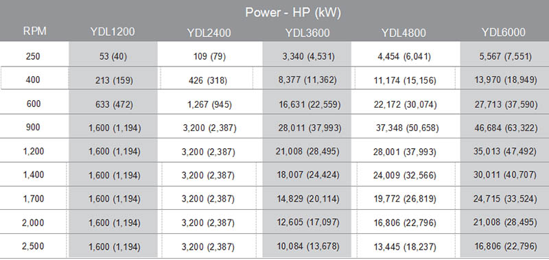 YDL型水力測功機(jī)功率曲線