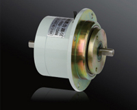 磁粉離合器是由主動(dòng)轉(zhuǎn)子(輸入軸)、從動(dòng)轉(zhuǎn)子(輸出軸)、含激磁線(xiàn)圈的磁軛組成,三部分相對(duì)同心裝配,形成了一個(gè)可以相對(duì)轉(zhuǎn)動(dòng)的整體,在主動(dòng)轉(zhuǎn)子和從動(dòng)轉(zhuǎn)子之間的環(huán)形空隙(工作腔)內(nèi)填有高導(dǎo)磁性的合金磁粉。 激磁線(xiàn)圈無(wú)電流通過(guò)時(shí),工作腔中的磁粉呈松散狀態(tài)。在主動(dòng)轉(zhuǎn)子所產(chǎn)生的離心力的作用下,磁粉被均勻地甩在主動(dòng)轉(zhuǎn)子的內(nèi)壁上,主、從動(dòng)轉(zhuǎn)子之間無(wú)力的相互作用,磁粉離合器處于分離狀態(tài),沒(méi)有轉(zhuǎn)矩的傳遞。激磁線(xiàn)圈有電流通過(guò)時(shí),磁軛中產(chǎn)生工作磁通,工作腔中的磁粉沿磁通方向呈鏈狀連接起來(lái)(形成磁粉鏈),磁粉離合器就是靠此時(shí)磁粉與磁粉、與工作面之間的摩擦力和磁粉鏈之間的抗剪力來(lái)傳遞轉(zhuǎn)矩,磁粉離合器處于結(jié)合狀態(tài)。切斷電流時(shí),磁通隨激磁電流的消失而消失,磁粉在重力的作用下又重新處于松散狀態(tài),并在離心力的作用下,被甩在主動(dòng)轉(zhuǎn)子的內(nèi)壁上,磁粉離合器又處于分離的狀態(tài)。 磁粉離合器在收卷和放卷中連續(xù)滑差采用時(shí),壽命因使用條件(相對(duì)滑差速度等)而轉(zhuǎn)變,但一般在容許連續(xù)滑差功率下用到時(shí),在額定電流狀況下,扭矩下滑最低額定扭矩時(shí)的磁粉壽命約為5000~8000小時(shí)。